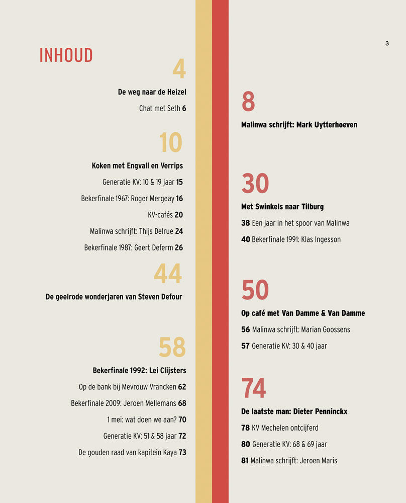 De geelrode wonderjaren van Steven Defour - Bekerfinale 1992: Lei Clijsters - Met Swinkels naar Tilburg - Bekerfinale 1991: Klas Ingesson - Op café met Van Damme & Van Damme - Op de bank bij mevrouw Vrancken - en nog veel, veel meer.
