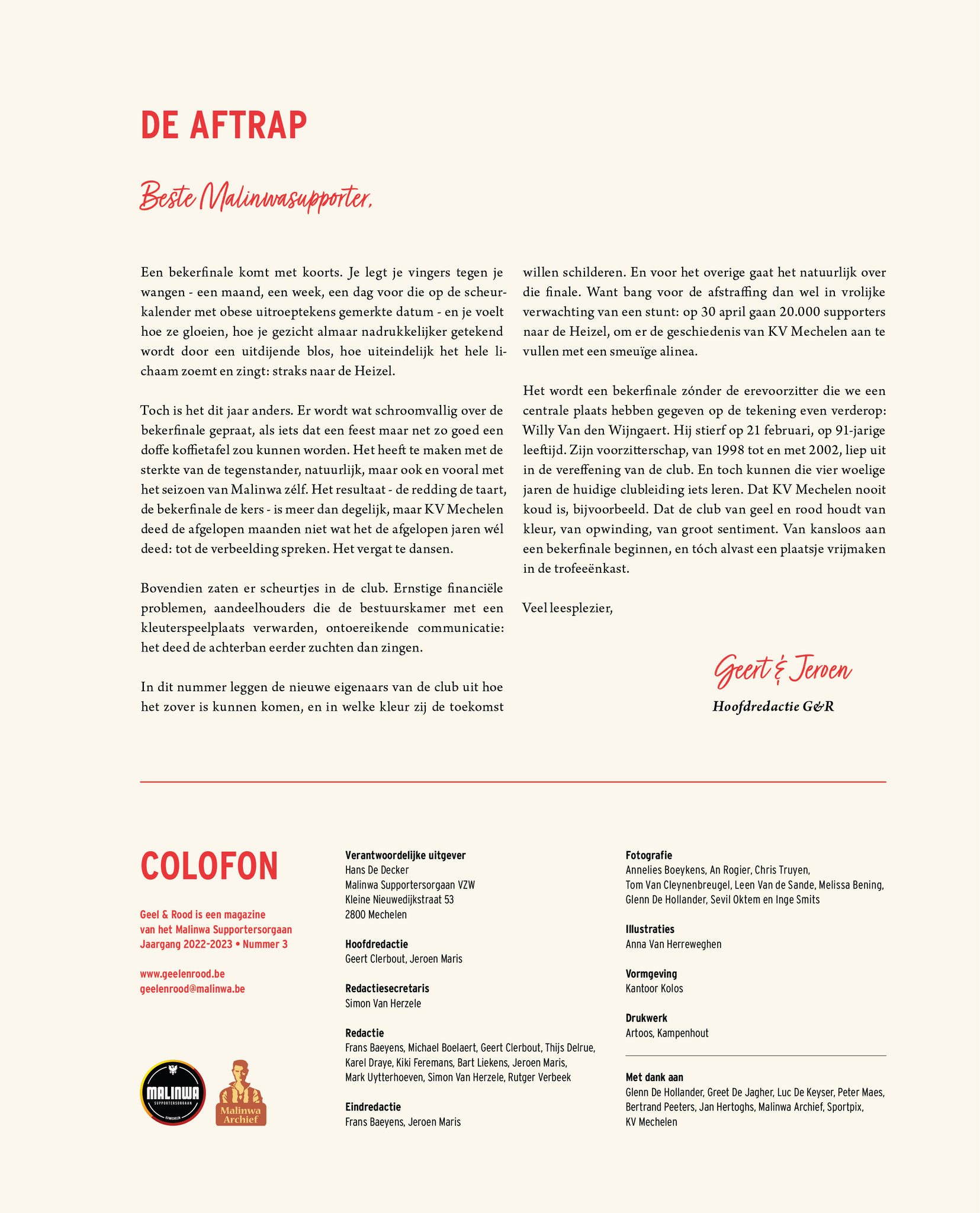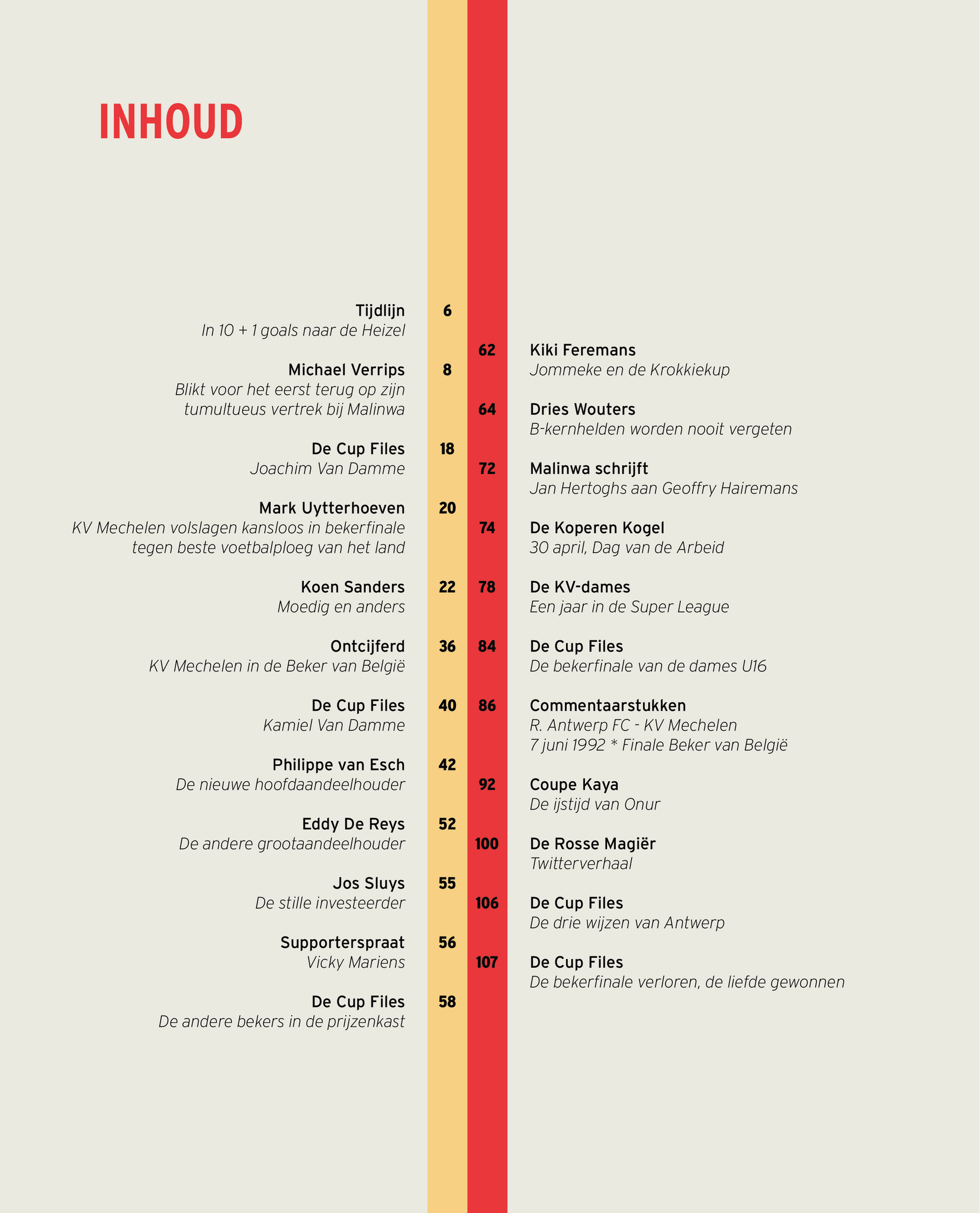 In meer dan 100 pagina’s komen de nieuwe aandeelhouders toelichting geven bij hun visie op de club, blikt Michael Verrips voor het eerst terug op zijn bewogen periode Achter De Kazerne en staan bekerhelden uit verleden en toekomst centraal.